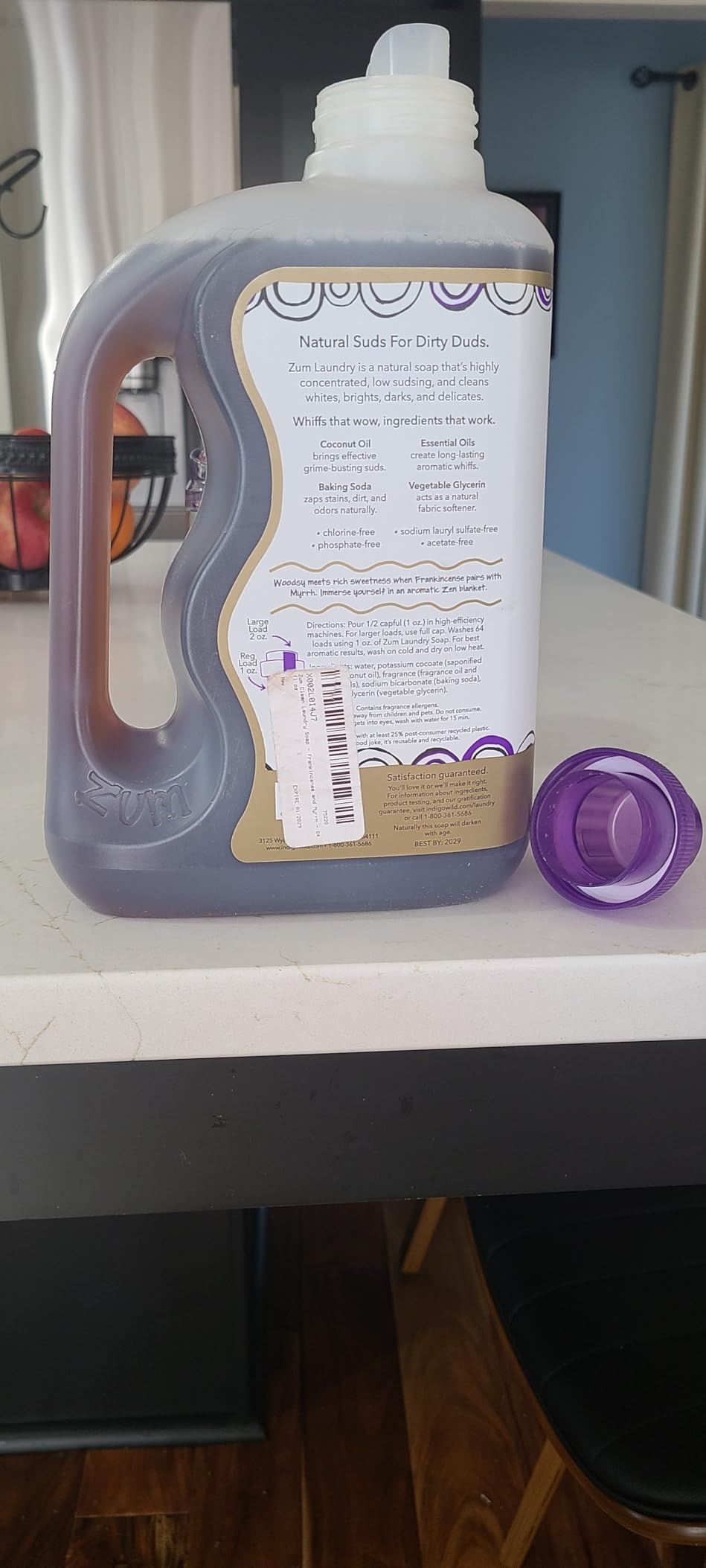 The Zum Laundry Soap in Lavender scent is wonderful. My clothes come out clean, soft, and with a light natural lavender smell. It works great in my HE washer and my sensitive skin has had no issues. Love the 2-pack!
