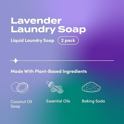 Zum Laundry Soap Lavender Scent – 64 fl oz, pack of 2. Plant-based formula with baking soda, essential oils, and saponified coconut oil. Gentle, effective cleaning with a calming lavender fragrance.